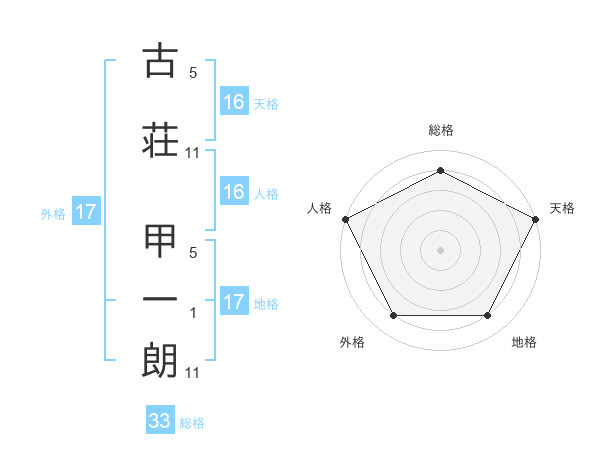 古荘 甲一朗さんを姓名の画数から五運を鑑定