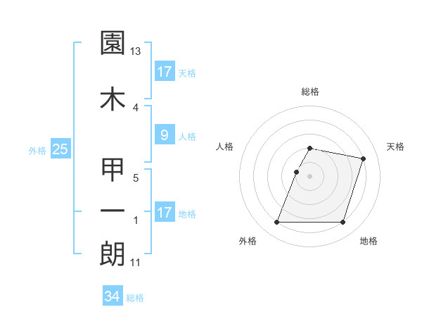 園木 甲一朗さんの天格は17画の4点!