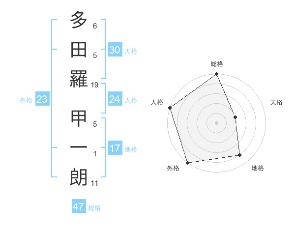 多田羅 甲一朗さんを姓名の画数から五運を鑑定