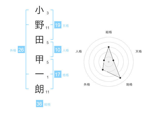 小野田 甲一朗さんを姓名の画数から五運を鑑定