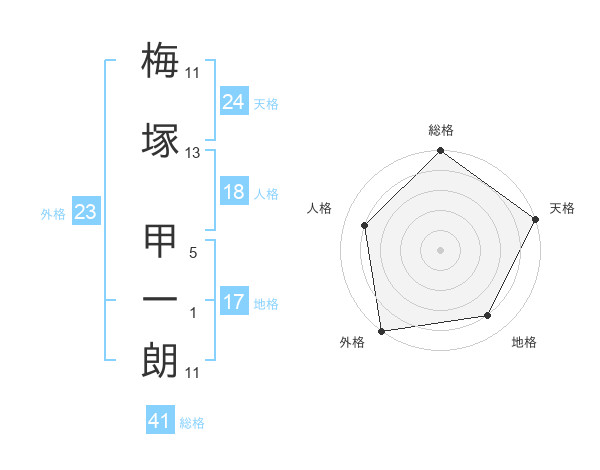梅塚 甲一朗さんを姓名の画数から五運を鑑定