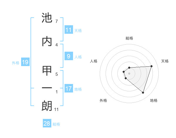 池内 甲一朗さんを姓名の画数から五運を鑑定