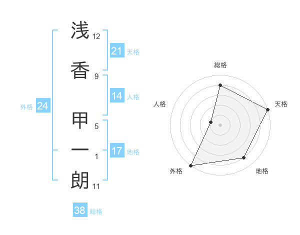 浅香 甲一朗さんの天格は21画の5点!