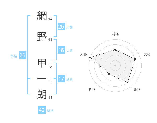 網野 甲一朗さんを姓名の画数から五運を鑑定