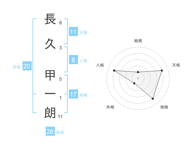 長久 甲一朗さんの天格は11画の4点!