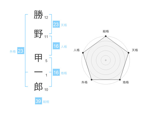 勝野 甲一郎さんを姓名の画数から五運を鑑定