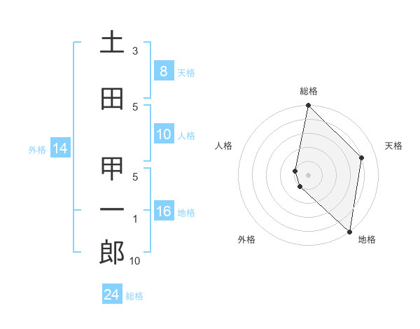 土田 甲一郎さんを姓名の画数から五運を鑑定