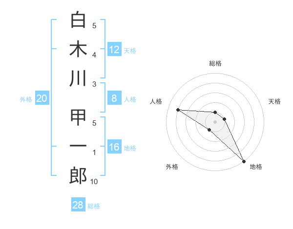 白木川 甲一郎さんの総格は28画の1点!