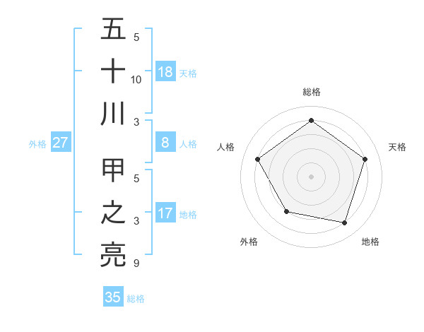 五十川 甲之亮さんの天格は18画の4点!