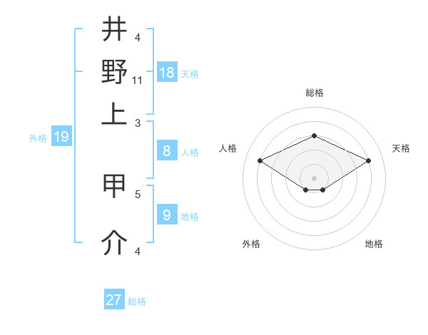 井野上 甲介さんを姓名の画数から五運を鑑定