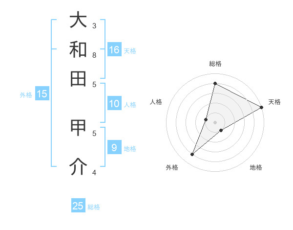 大和田 甲介さんを姓名の画数から五運を鑑定