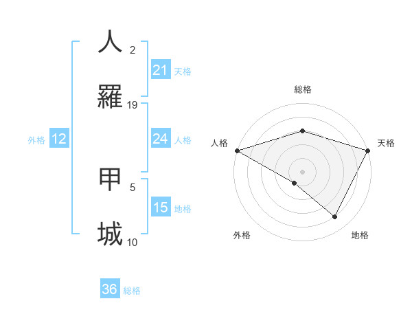 人羅 甲城さんの天格は21画の5点!