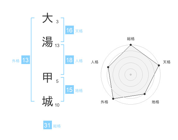 大湯 甲城さんを姓名の画数から五運を鑑定