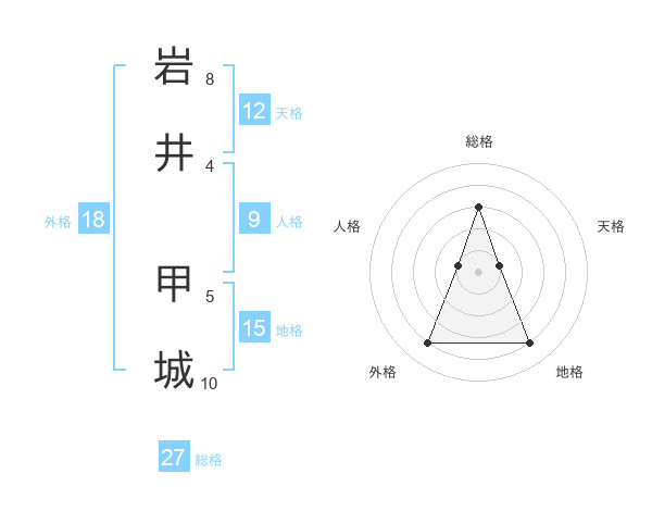 岩井 甲城さんを姓名の画数から五運を鑑定