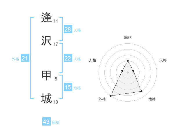 逢沢 甲城さんを姓名の画数から五運を鑑定