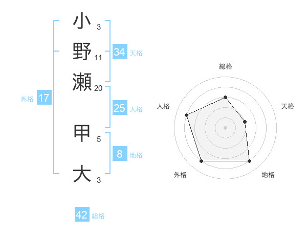 小野瀬 甲大さんを姓名の画数から五運を鑑定