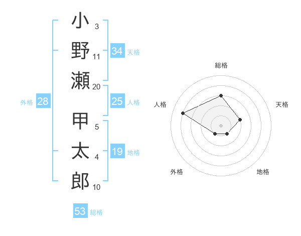 小野瀬 甲太郎さんを姓名の画数から五運を鑑定