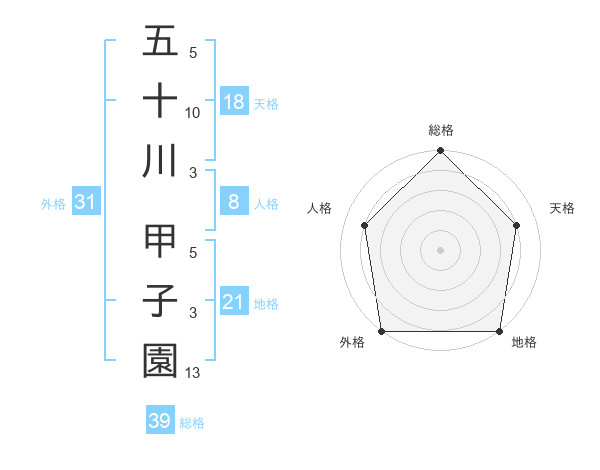 五十川 甲子園さんを姓名の画数から五運を鑑定