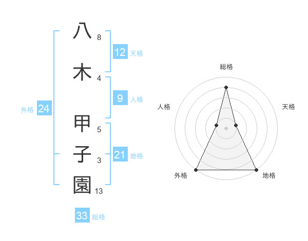八木 甲子園さんの外格は24画の5点!