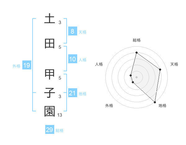 土田 甲子園さんの総格は29画の4点!