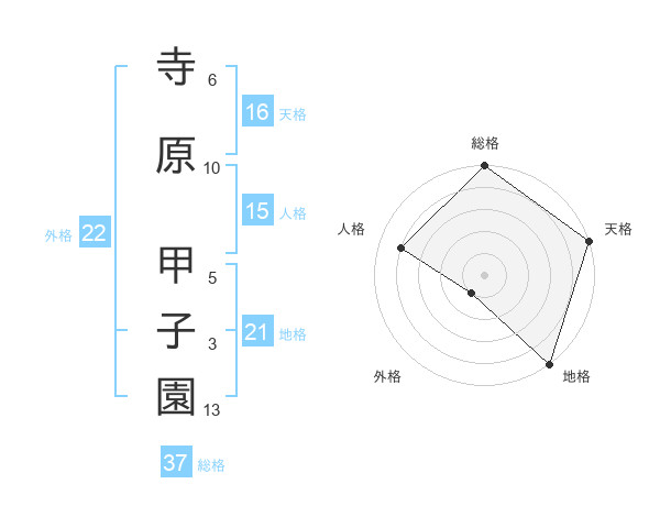寺原 甲子園さんを姓名の画数から五運を鑑定