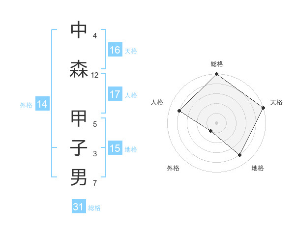 中森 甲子男さんを姓名の画数から五運を鑑定
