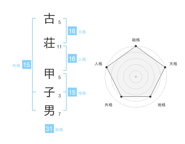 古荘 甲子男さんを姓名の画数から五運を鑑定