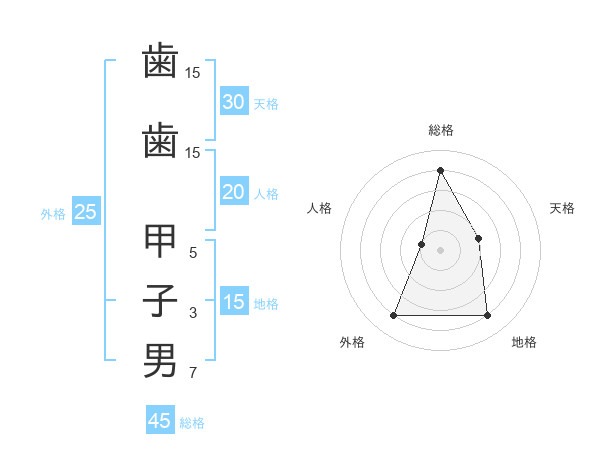 歯歯 甲子男さんを姓名の画数から五運を鑑定