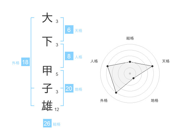 大下 甲子雄さんを姓名の画数から五運を鑑定