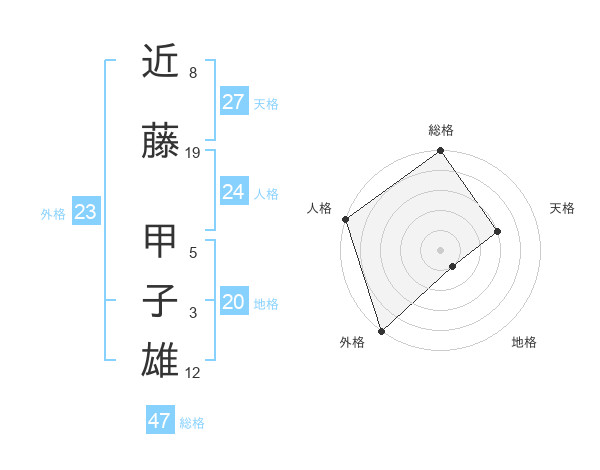 近藤 甲子雄さんの総格は47画の5点!