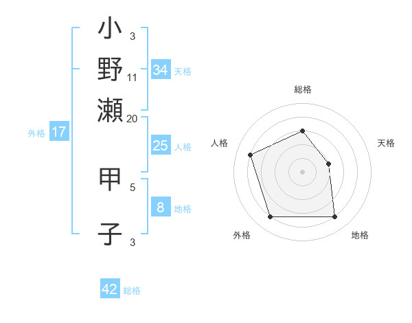 小野瀬 甲子さんを姓名の画数から五運を鑑定