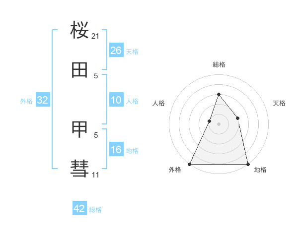 桜田 甲彗さんを姓名の画数から五運を鑑定