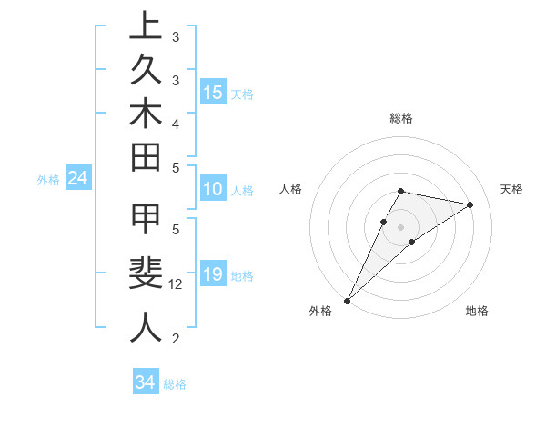 上久木田 甲斐人さんを姓名の画数から五運を鑑定