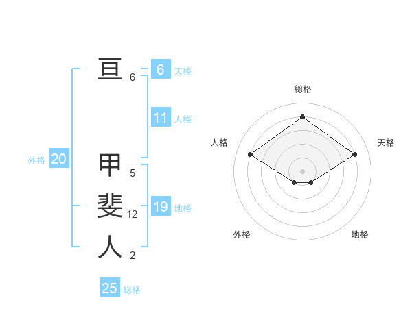 亘 甲斐人さんの総格は25画の4点!
