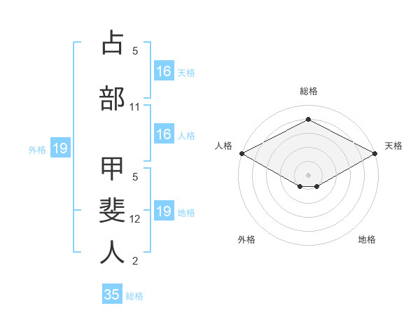 占部 甲斐人さんを姓名の画数から五運を鑑定