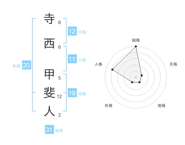 寺西 甲斐人さんを姓名の画数から五運を鑑定