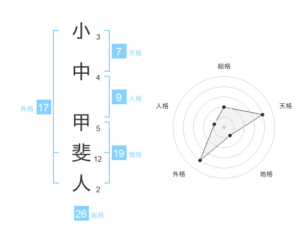 小中 甲斐人さんを姓名の画数から五運を鑑定