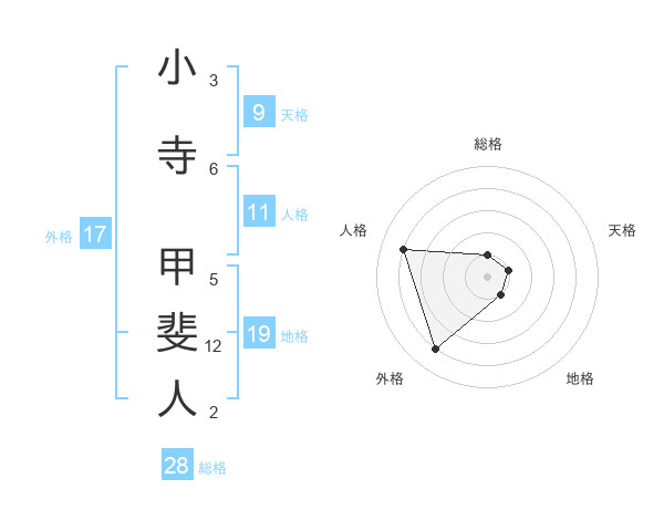 小寺 甲斐人さんを姓名の画数から五運を鑑定