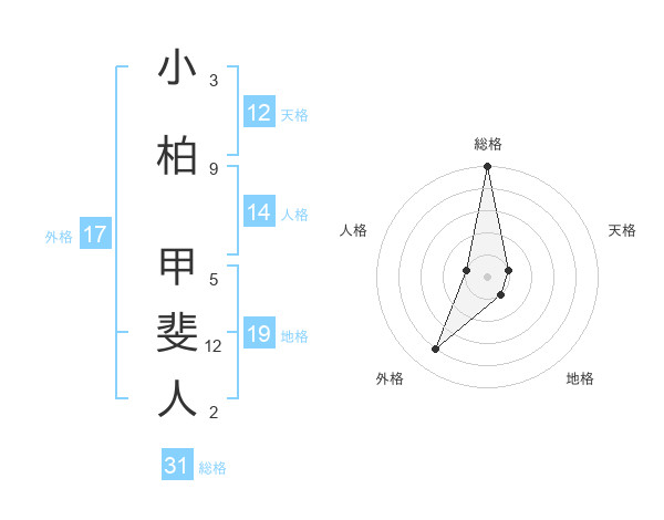 小柏 甲斐人さんの総格は31画の5点!