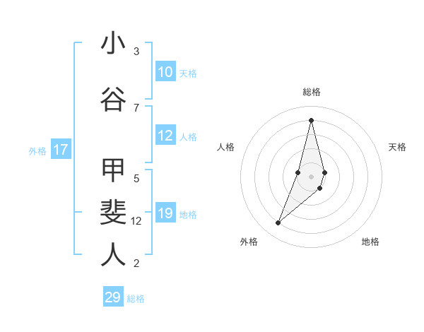 小谷 甲斐人さんを姓名の画数から五運を鑑定