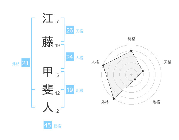 江藤 甲斐人さんの外格は21画の5点!