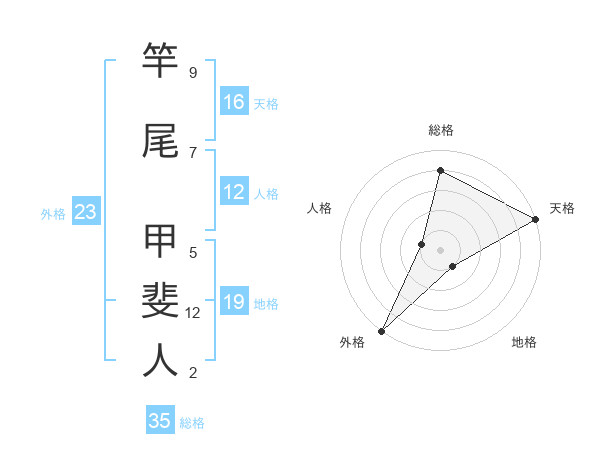 竿尾 甲斐人さんの外格は23画の5点!