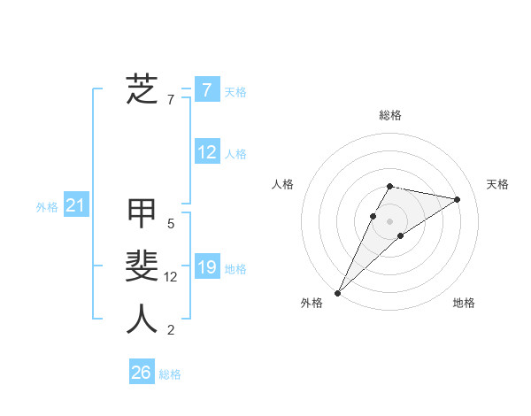 芝 甲斐人さんの外格は21画の5点!