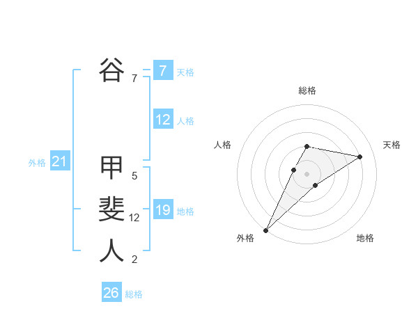 谷 甲斐人さんの外格は21画の5点!