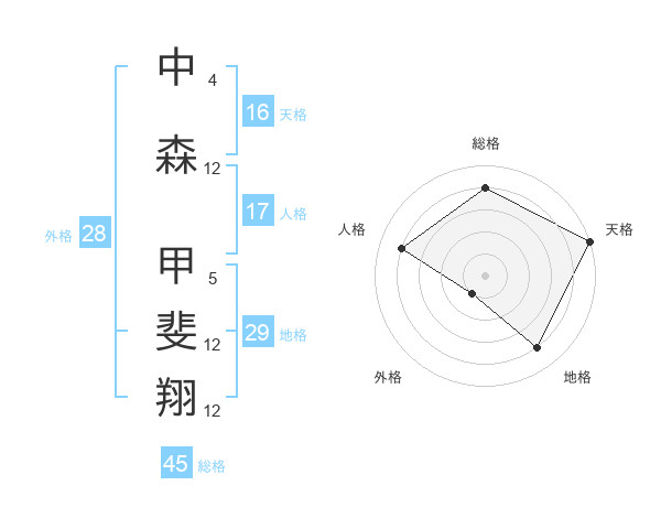 中森 甲斐翔さんの総格は45画の4点!