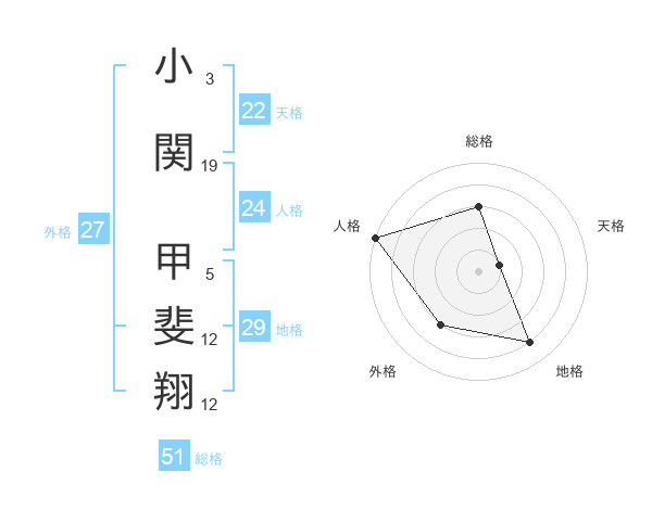 小関 甲斐翔さんを姓名の画数から五運を鑑定
