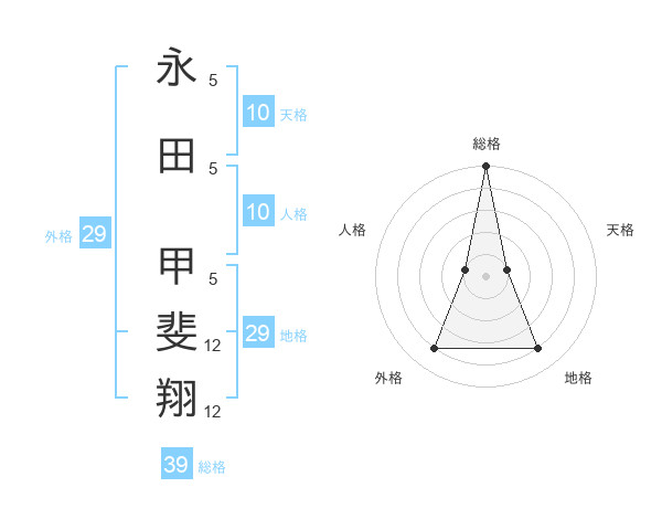 永田 甲斐翔さんを姓名の画数から五運を鑑定