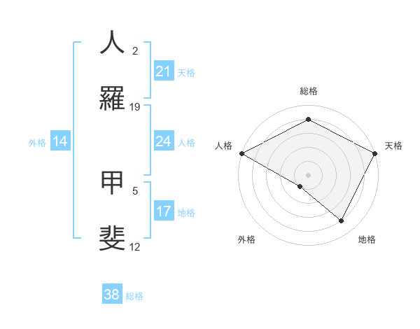 人羅 甲斐さんを姓名の画数から五運を鑑定