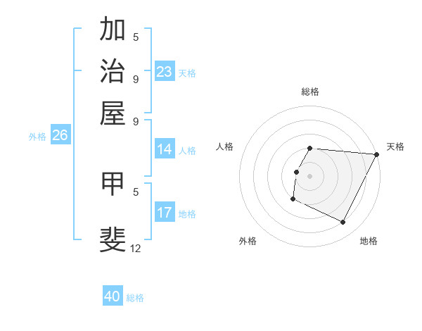 加治屋 甲斐さんを姓名の画数から五運を鑑定