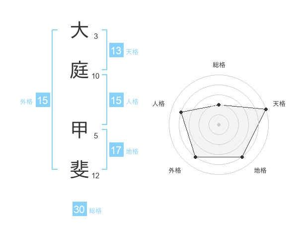 大庭 甲斐さんを姓名の画数から五運を鑑定